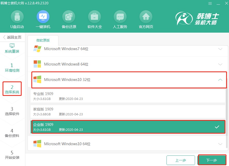 3.在“選擇系統(tǒng)”這個環(huán)節(jié),務必選擇到合適的win10鏡像文件,確認后別忘了點“下一步”以繼續(xù)后面的流程。