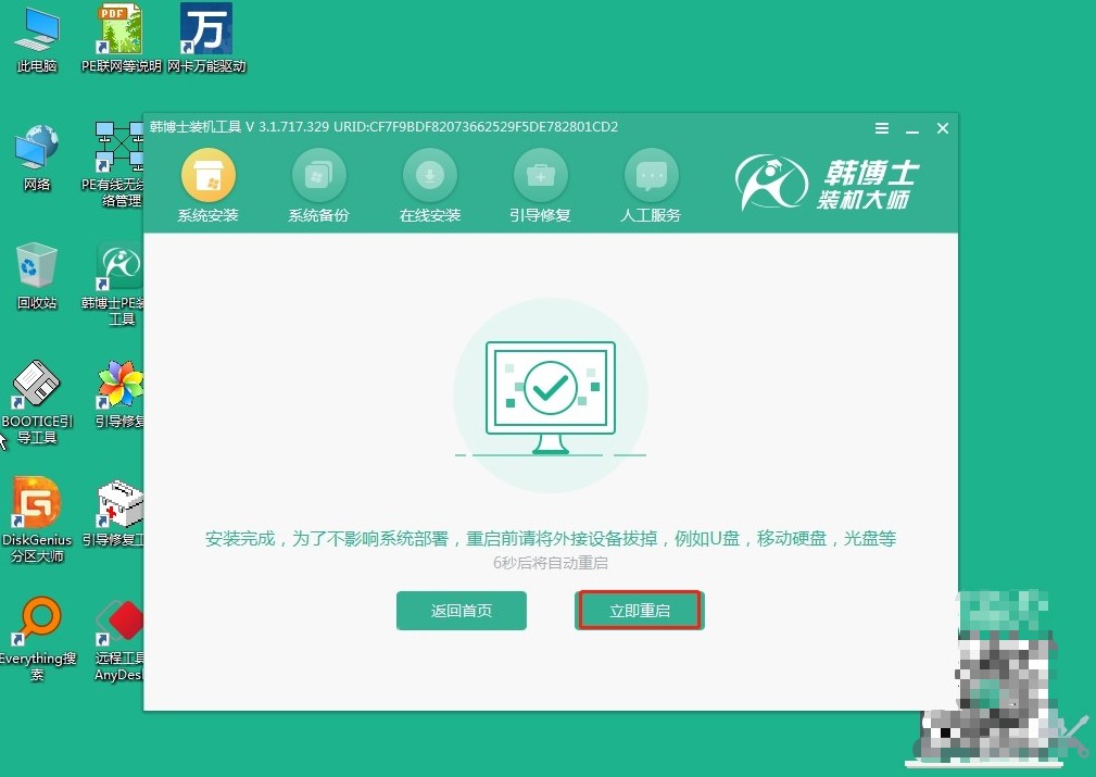 5.當前系統處于部署安裝環境的階段,請耐心等待它完成,接著點擊“立即重啟”。