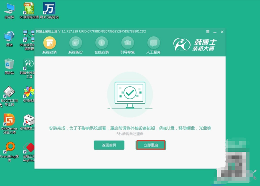 5.當前系統正在安裝和部署中,為了確保順利完成,建議您此時不要進行其他操作。一旦安裝完成,您將看到提示信息,點擊“立即重啟”即可繼續。