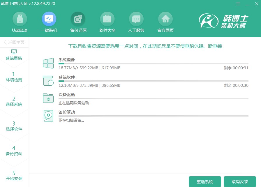 上述就是具體詳細的華碩靈耀13重裝win7系統步驟,給華碩靈耀13在線重裝win7,不是什么復雜的操作。而且相比傳統的U盤重裝,在線重裝更加省時省力。韓博士一鍵重裝確實方便,省去了不少麻煩,但無論用什么方法,系統重裝前一定要備份數據,這一步絕不能省略哦!